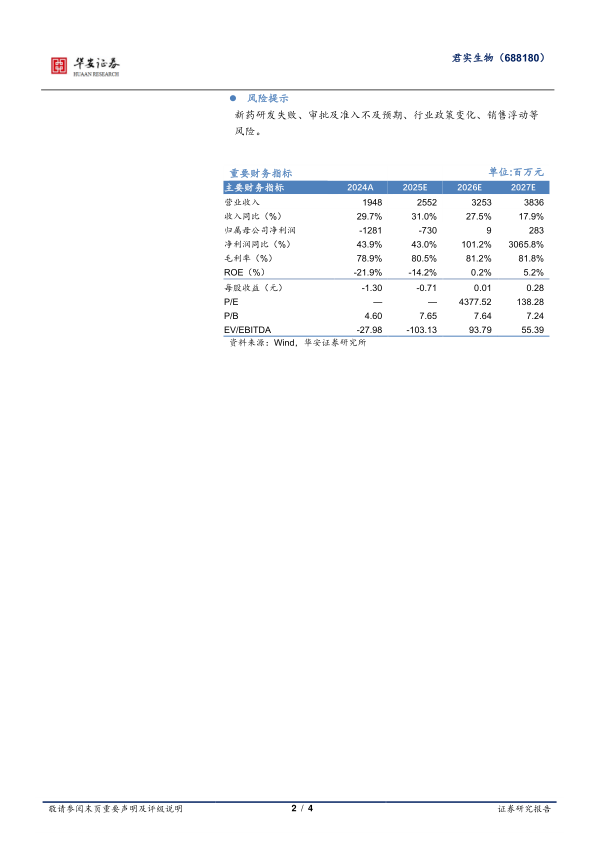 新药研发失败、审批及准入不及预期、行业政策变化、销售浮动等风险。