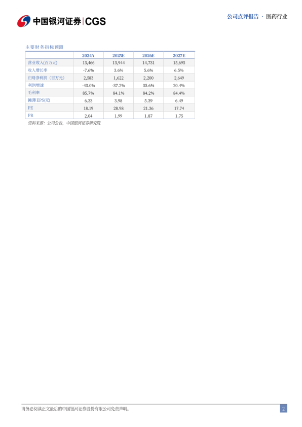 投资建议:公司稳步推进儿科核心业务销售管理,同时加强促卵泡激素、伏欣奇拜单抗等产品的销售推广力度,当前公司正处于创新研发转型关键阶段,多个产品有望陆续实现上市销售,预计公司2025-2027年分别实现归母净利润16.2/22.0/26.5亿元,对应PE分别为29/21/18倍,维持“推荐”评级。
