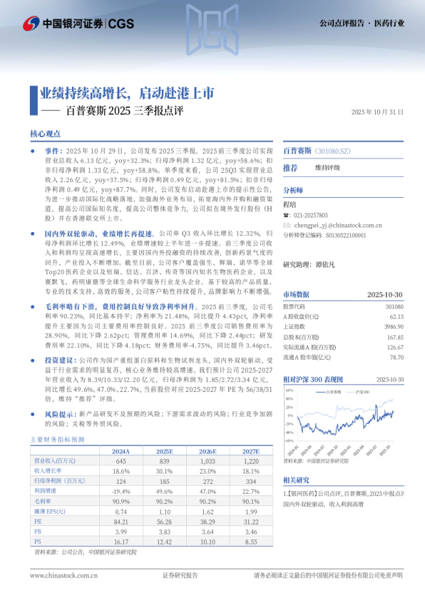 百普赛斯2025三季报点评:业绩持续高增长,启动赴港上市