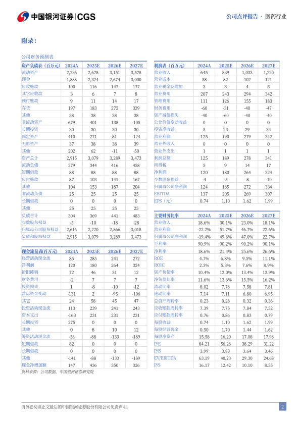 投资建议:公司作为国产重组蛋白原料和生物试剂龙头,国内外双轮驱动,受益于行业需求的明显复苏,核心业务维持较高增速。我们预计公司2025-2027年营业收入为8.39/10.33/12.20亿元,归母净利润为1.85/2.72/3.34亿元,同比增长49.6%、47.0%、22.7%,当前股价对应2025-2027年PE为56/38/31倍,维持“推荐”评级。