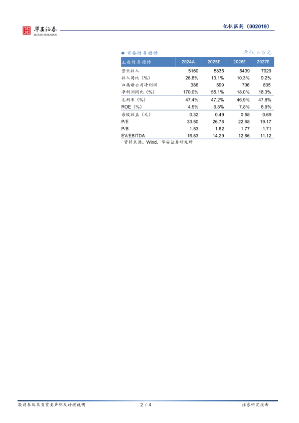 我们预计,公司2025~2027年收入分别58.4/64.4/70.3亿元,分别同比增长13.1%/10.3%/9.2%,归母净利润分别为6.0/7.1/8.4亿元,分别同比增长55.1%/18.0%/18.3%,对应PE为27X/23X/19X。看好公司创新药的全球化发展、多个独家品种的市场优势。维持“买入”评级。