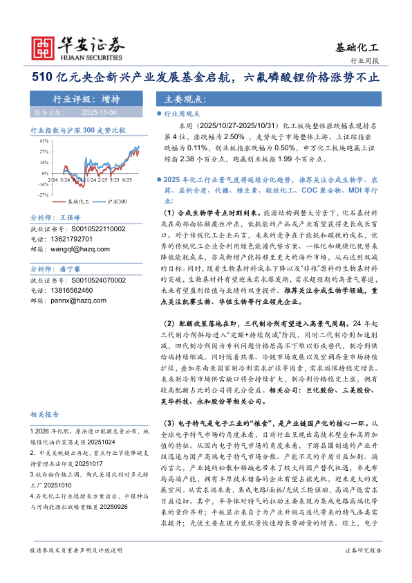 基础化工行业周报:510亿元央企新兴产业发展基金启航,六氟磷酸锂价格涨势不止