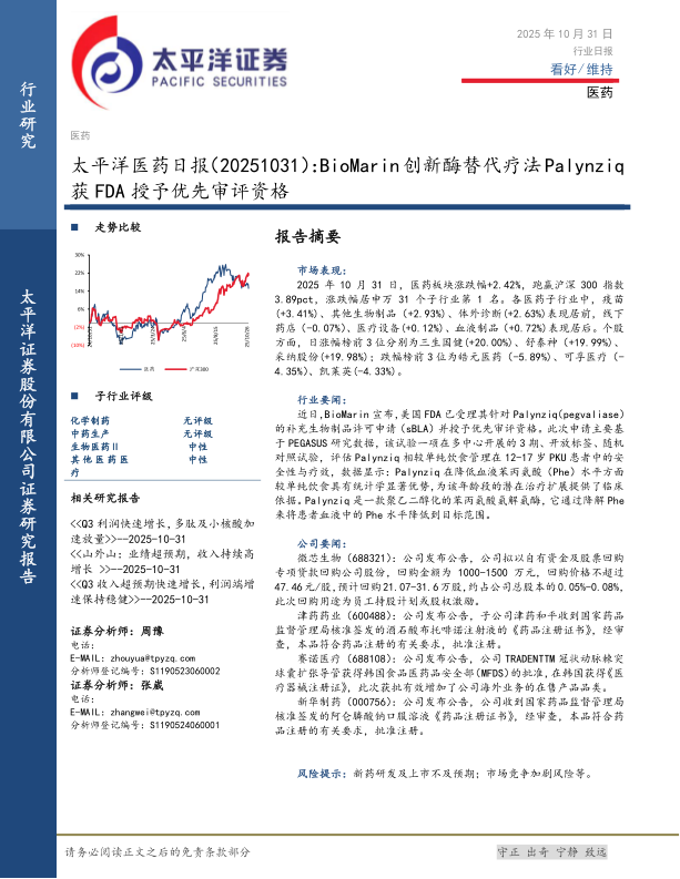 医药日报:BioMarin创新酶替代疗法Palynziq获FDA授予优先审评资格