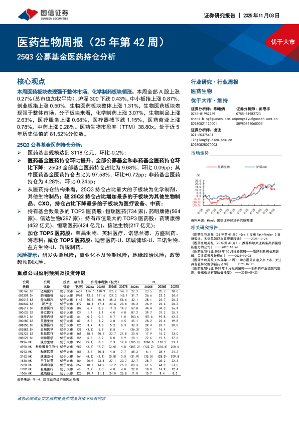 医药生物行业周报(25年第42周):25Q3公募基金医药持仓分析