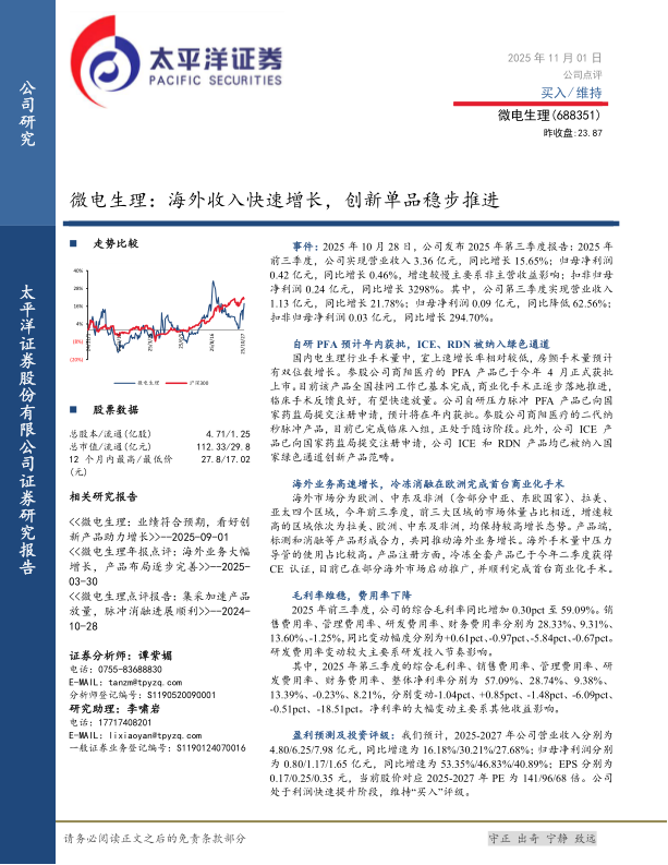 风险提示:集采降价的风险,PFA推广不及预期的风险,产品研发不及预期的风险。