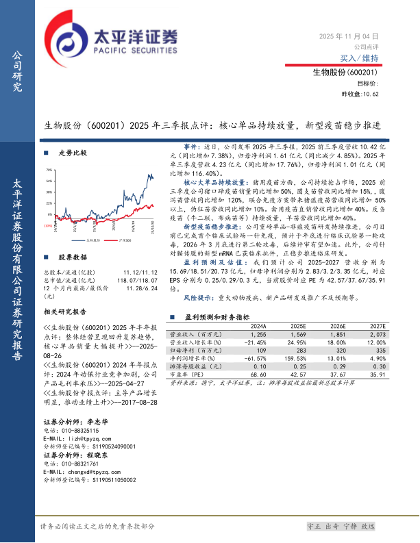 2025年三季报点评:核心单品持续放量,新型疫苗稳步推进