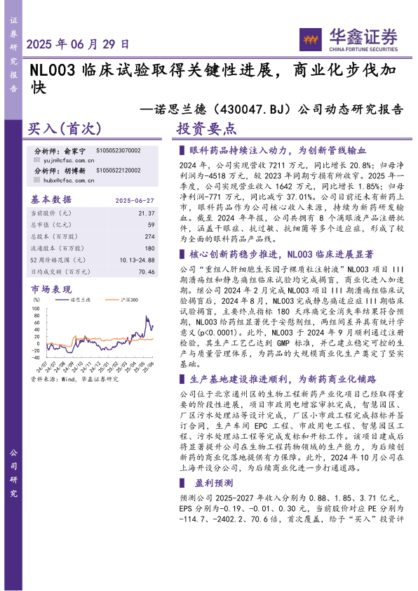 公司动态研究报告:NL003临床试验取得关键性进展,商业化步伐加快