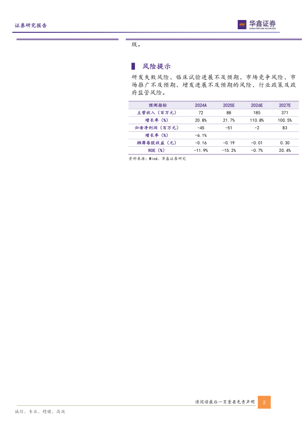 预测公司2025-2027年收入分别为0.88、1.85、3.71亿元,EPS分别为-0.19、-0.01、0.30元,当前股价对应PE分别为-114.7、-2402.2、70.6倍,首次覆盖,给予“买入”投资评级。