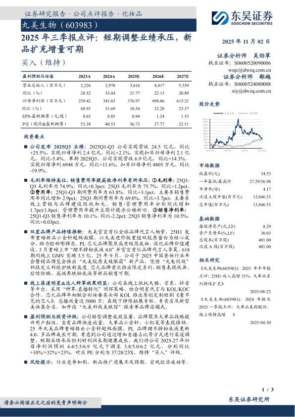 2025年三季报点评:短期调整业绩承压,新品扩充增量可期
