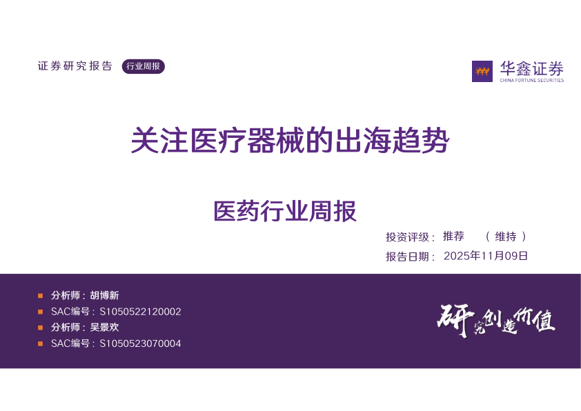 1)医疗器械领域,中外合作与全球产业链分工,推荐【祥生医疗】,高值耗材出口突破,关注【春立医疗】、【爱康医疗】、【南微医学】、【百心安】。
