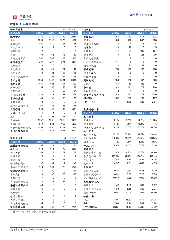 我们预计2025-2027年公司实现营业收入7.82亿元、8.73亿元、9.72亿元,同比+5.1%/+11.7%/11.3%;实现归母净利润1.51亿元、1.74亿元、2.00亿元,同比+7.5%/+15.6%/+14.7%。维持“增持”评级。