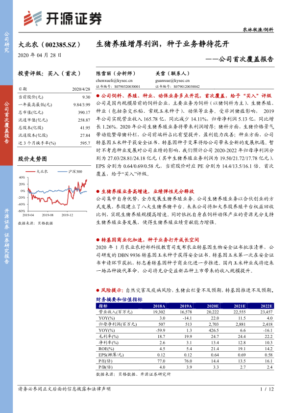 公司首次覆盖报告:生猪养殖增厚利润,种子业务静待花开
