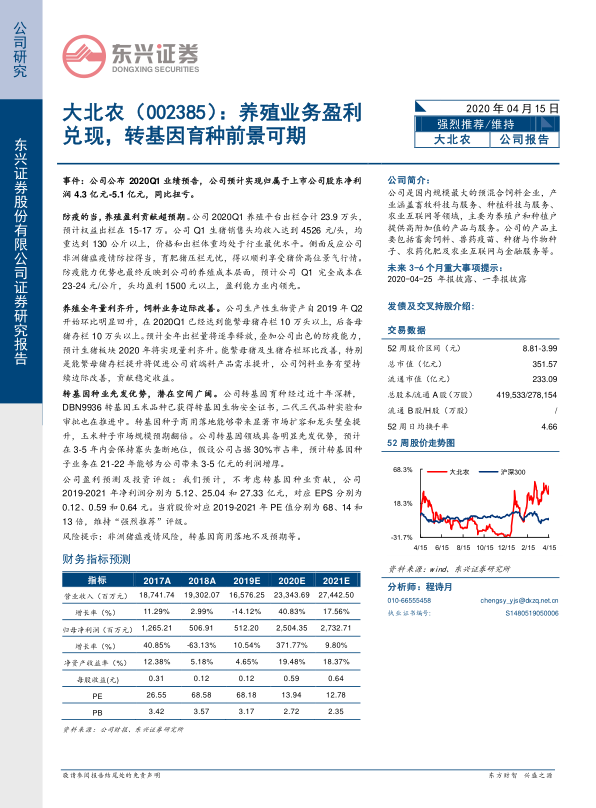 养殖业务盈利兑现,转基因育种前景可期