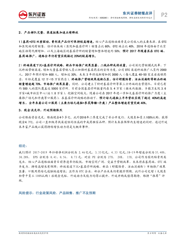 中报点评:净利增速略超预期,持续高增长的贴膏剂龙头