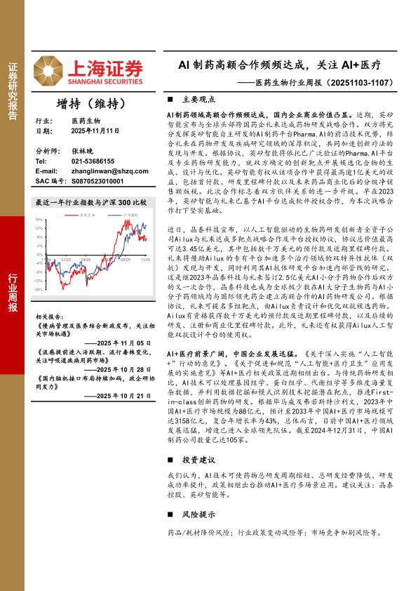 医药生物行业周报:AI制药高额合作频频达成,关注AI+医疗