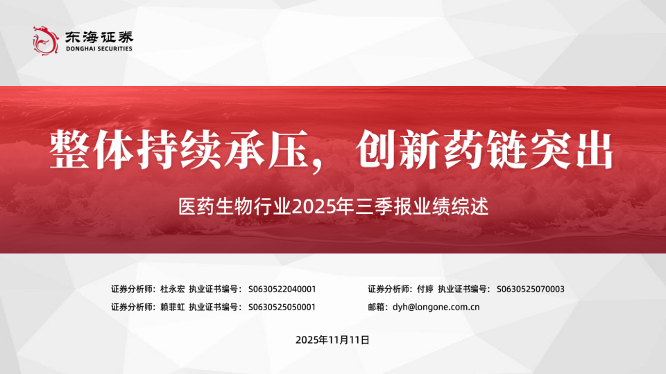 医药生物行业2025年三季报业绩综述:整体持续承压,创新药链突出