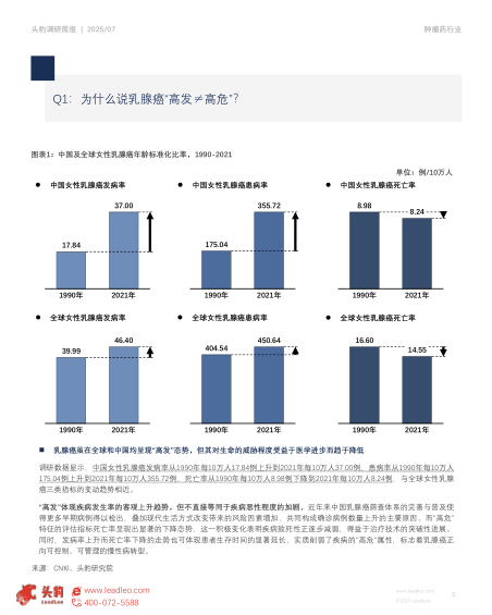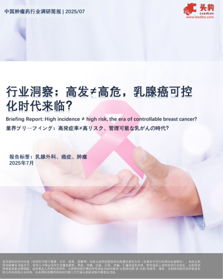 中国肿瘤药行业调研简报:行业洞察:高发≠高危,乳腺癌可控化时代来临?