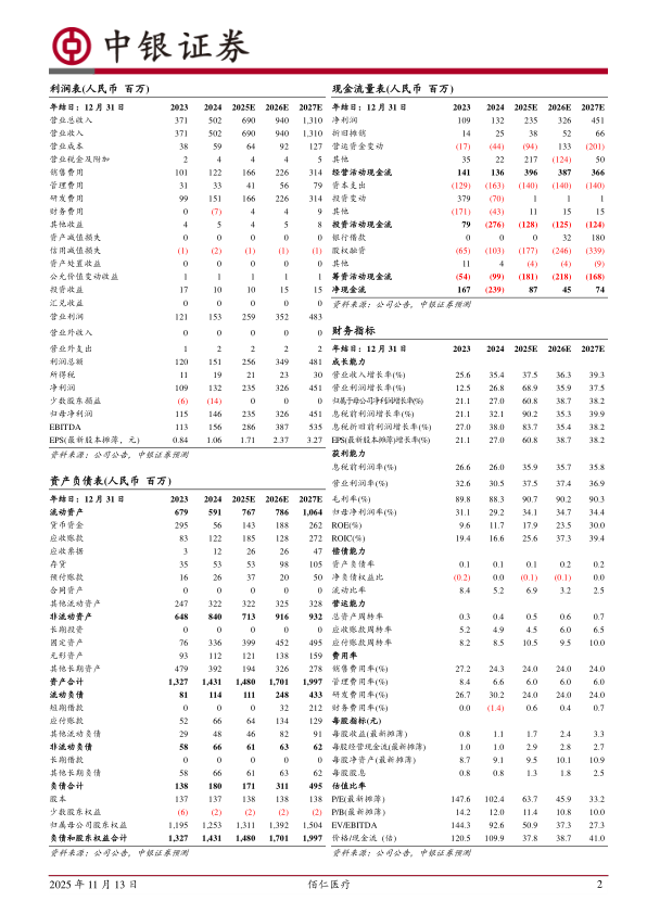 我们维持预测公司2025-2027年归母净利润为2.35/3.26/4.51亿元,对应EPS分别为1.71/2.37/3.27元,当前股价对应估值分别为63.7/45.9/33.2x,考虑到公司新产品处于放量阶段,同时公司研发持续投入,未来仍有望持续有多个新产品获批,我们看好公司未来的发展前景,维持买入评级。
