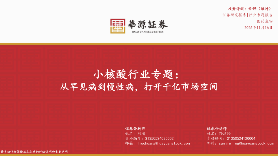 小核酸行业专题:从罕见病到慢性病,打开千亿市场空间