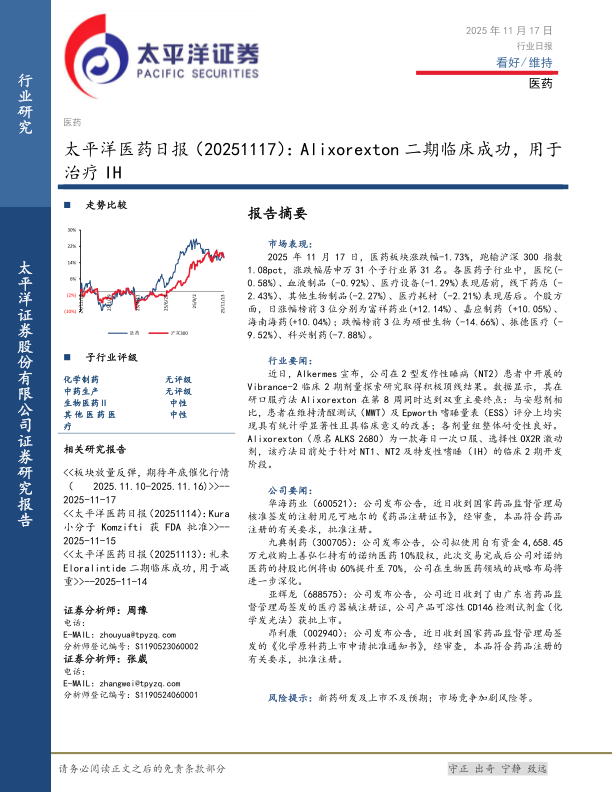 医药日报:Alixorexton二期临床成功,用于治疗IH