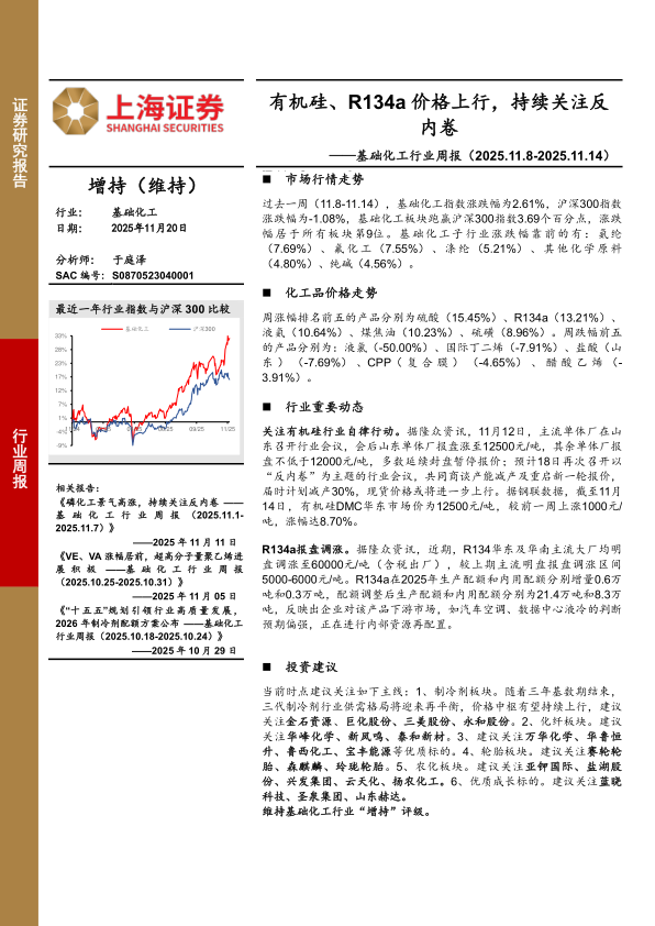基础化工行业周报:有机硅、R134a价格上行,持续关注反内卷