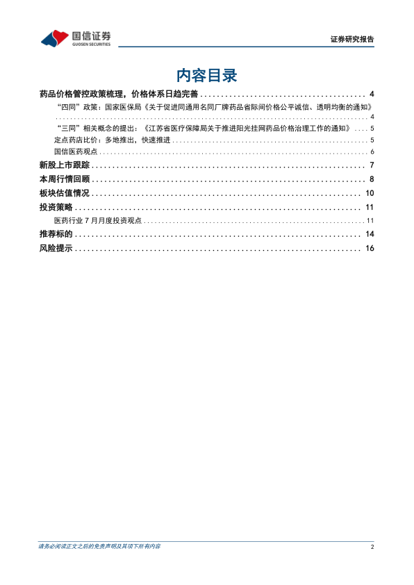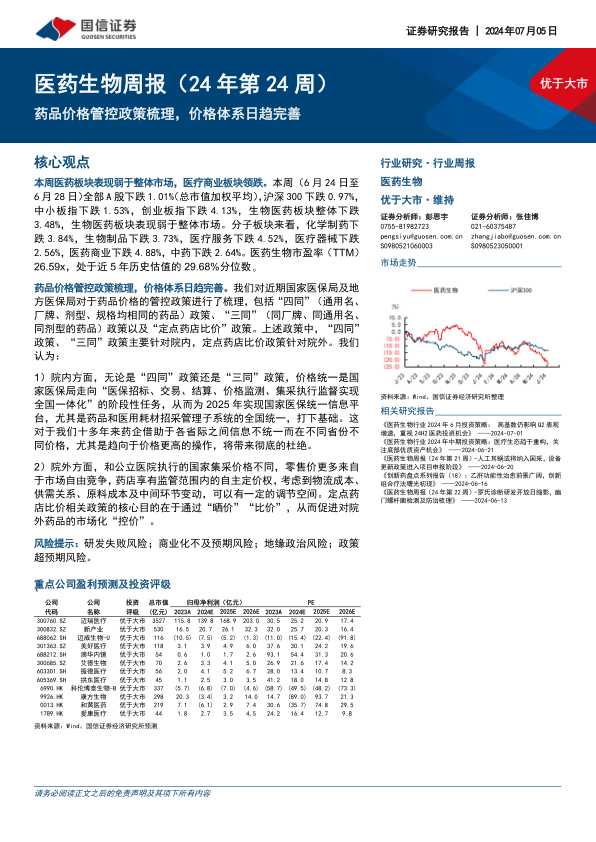 医药生物周报(24年第24周):药品价格管控政策梳理,价格体系日趋完善