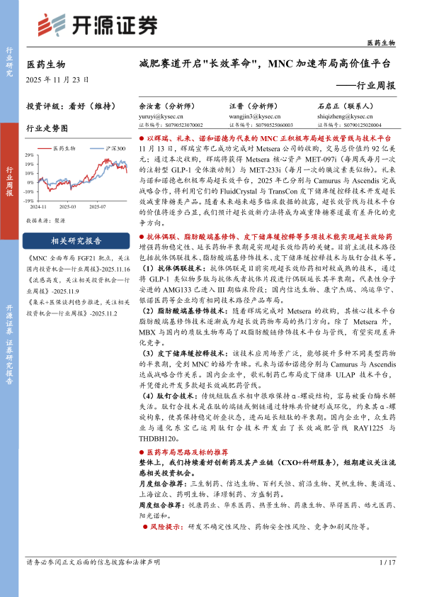 医药生物行业周报:减肥赛道开启“长效革命”,MNC加速布局高价值平台