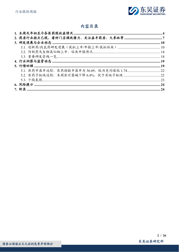 医药生物行业跟踪周报:药店现金流稳健、估值低,重点推荐益丰药房、大参林等