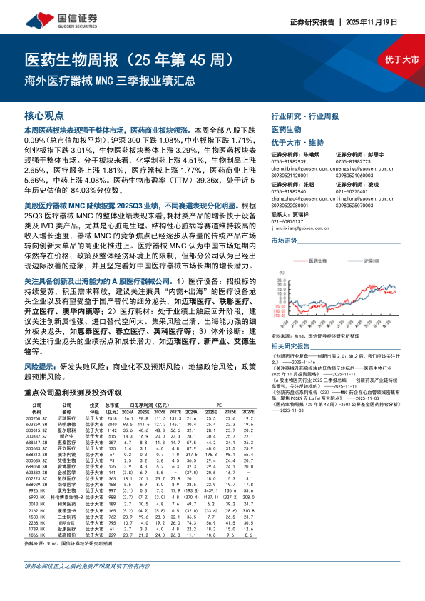 医药生物行业周报(25年第45周):海外医疗器械MNC三季报业绩汇总