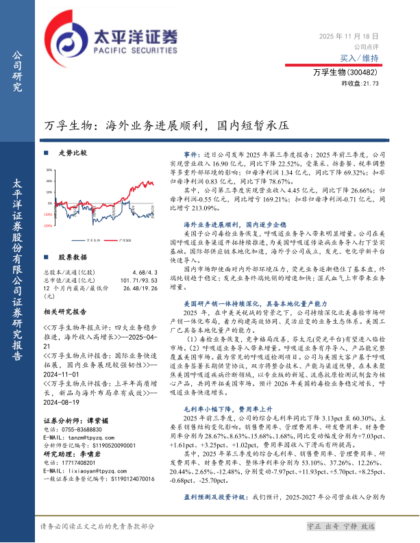 万孚生物:海外业务进展顺利,国内短暂承压