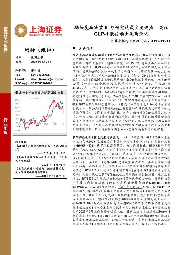 医药生物行业周报:玛仕度肽减重III期研究达成主要终点,关注GLP-1数据读出及商业化