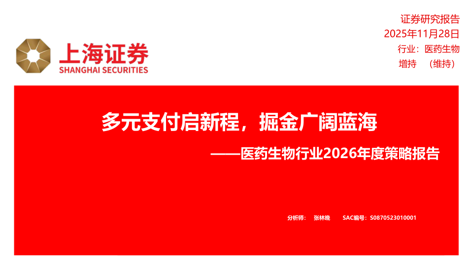 医药生物行业2026年度策略报告:多元支付启新程,掘金广阔蓝海