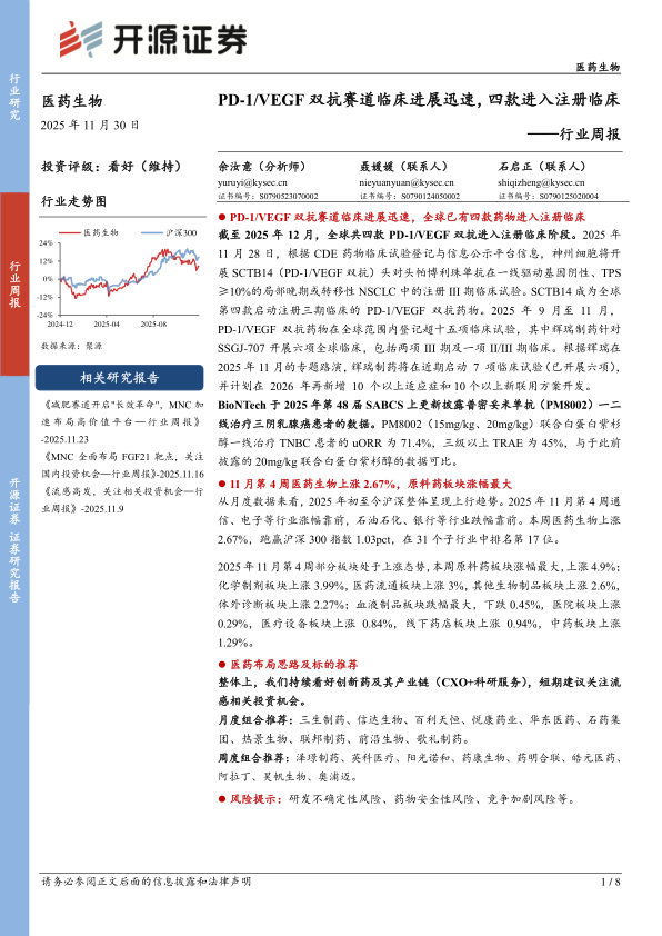 医药生物行业周报:PD-1/VEGF双抗赛道临床进展迅速,四款进入注册临床