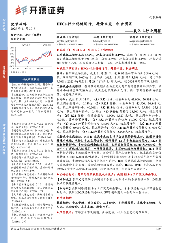 氟化工行业周报:HFCs行业稳健运行,趋势未变,机会明显