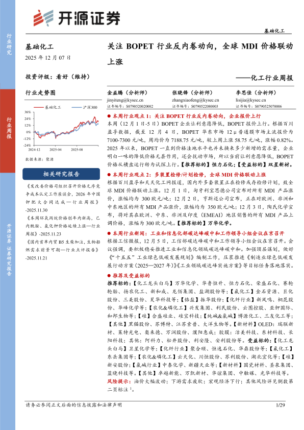 基础化工行业周报:关注BOPET行业反内卷动向,全球MDI价格联动上涨