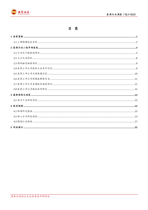 风险提示:医药行业政策不确定性超预期风险;研发进展不及预期风险;业绩不及预期风险。