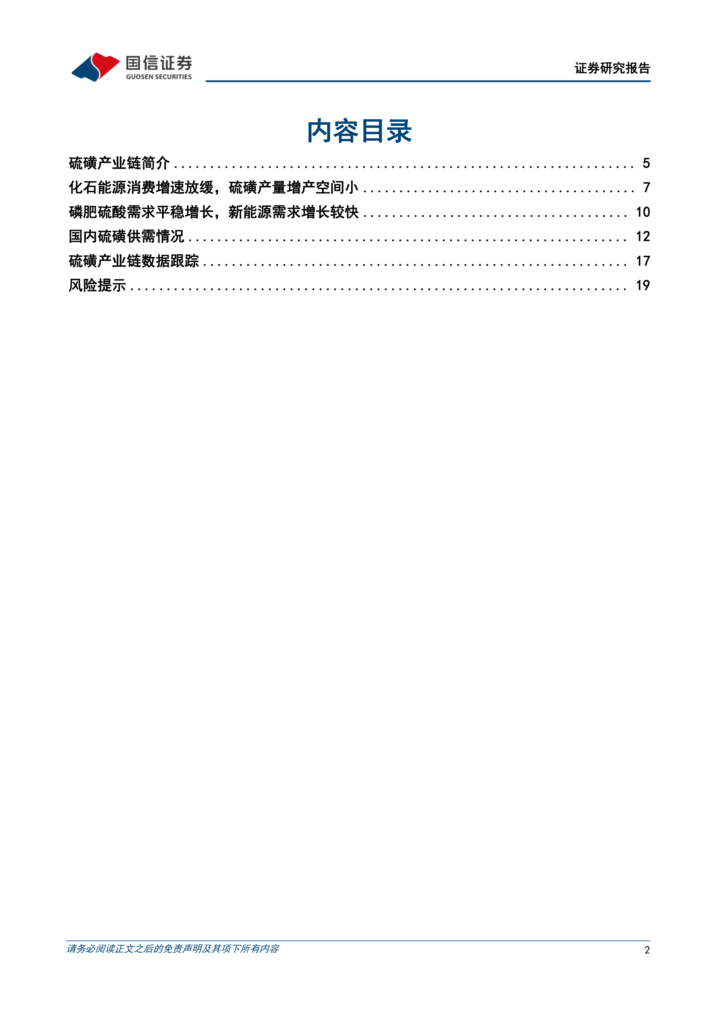 风险提示:宏观经济不及预期;磷肥及其他下游需求不及预期;行业新增产能投放进度超预期;技术进步带来的硫酸消费降低。