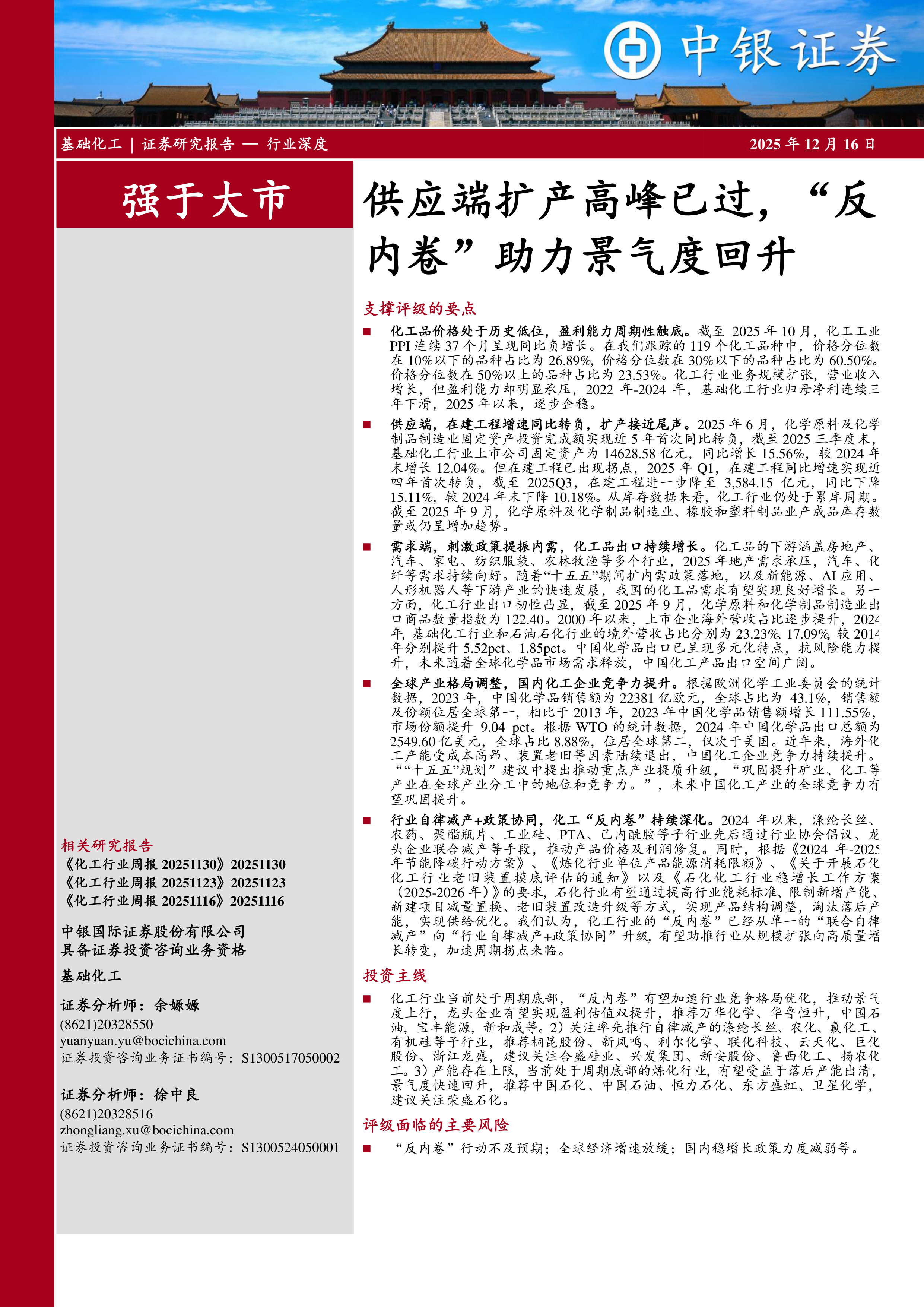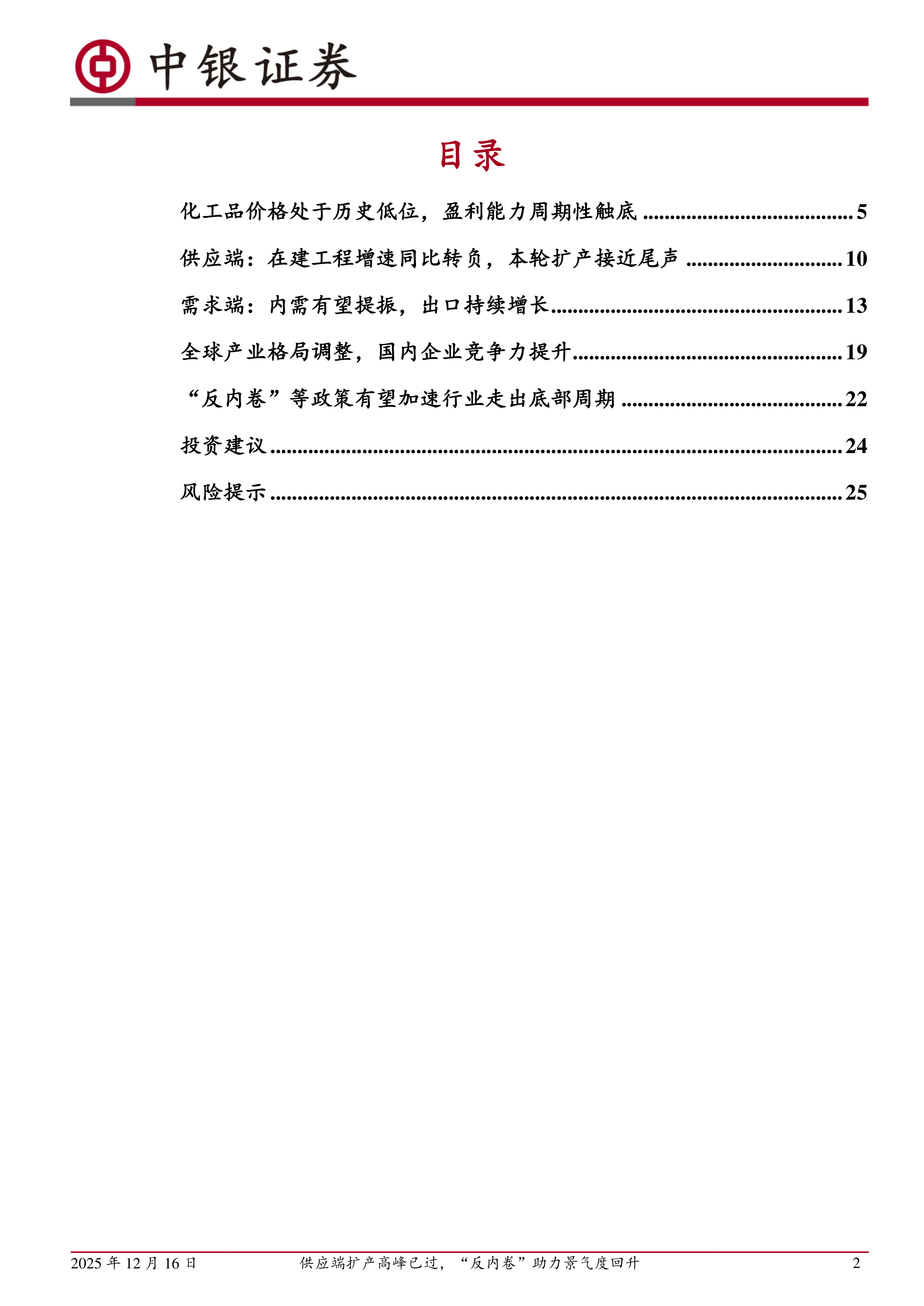 基础化工:供应端扩产高峰已过,“反内卷”助力景气度回升