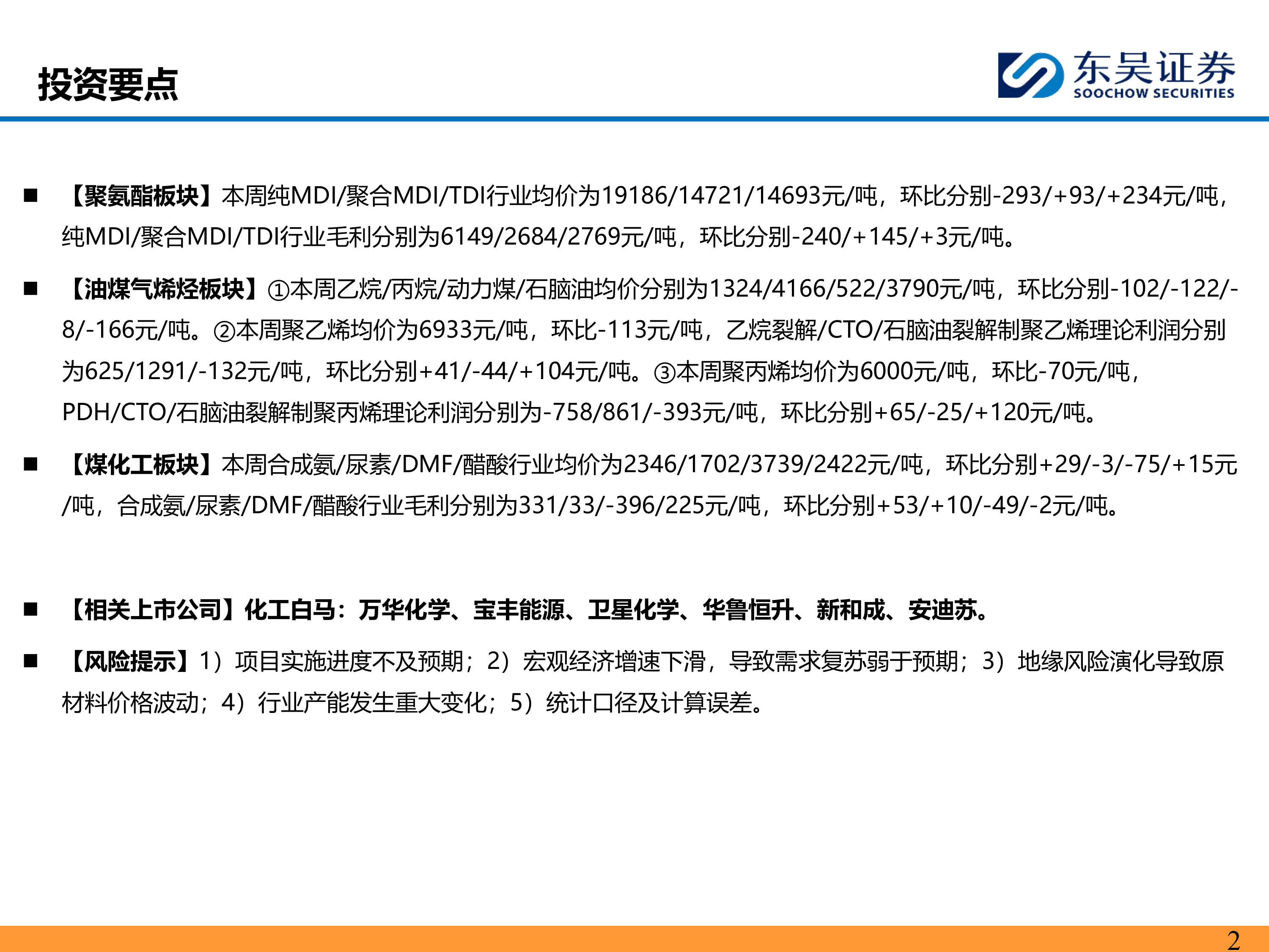 【相关上市公司】化工白马:万华化学、宝丰能源、卫星化学、华鲁恒升、新和成、安迪苏。