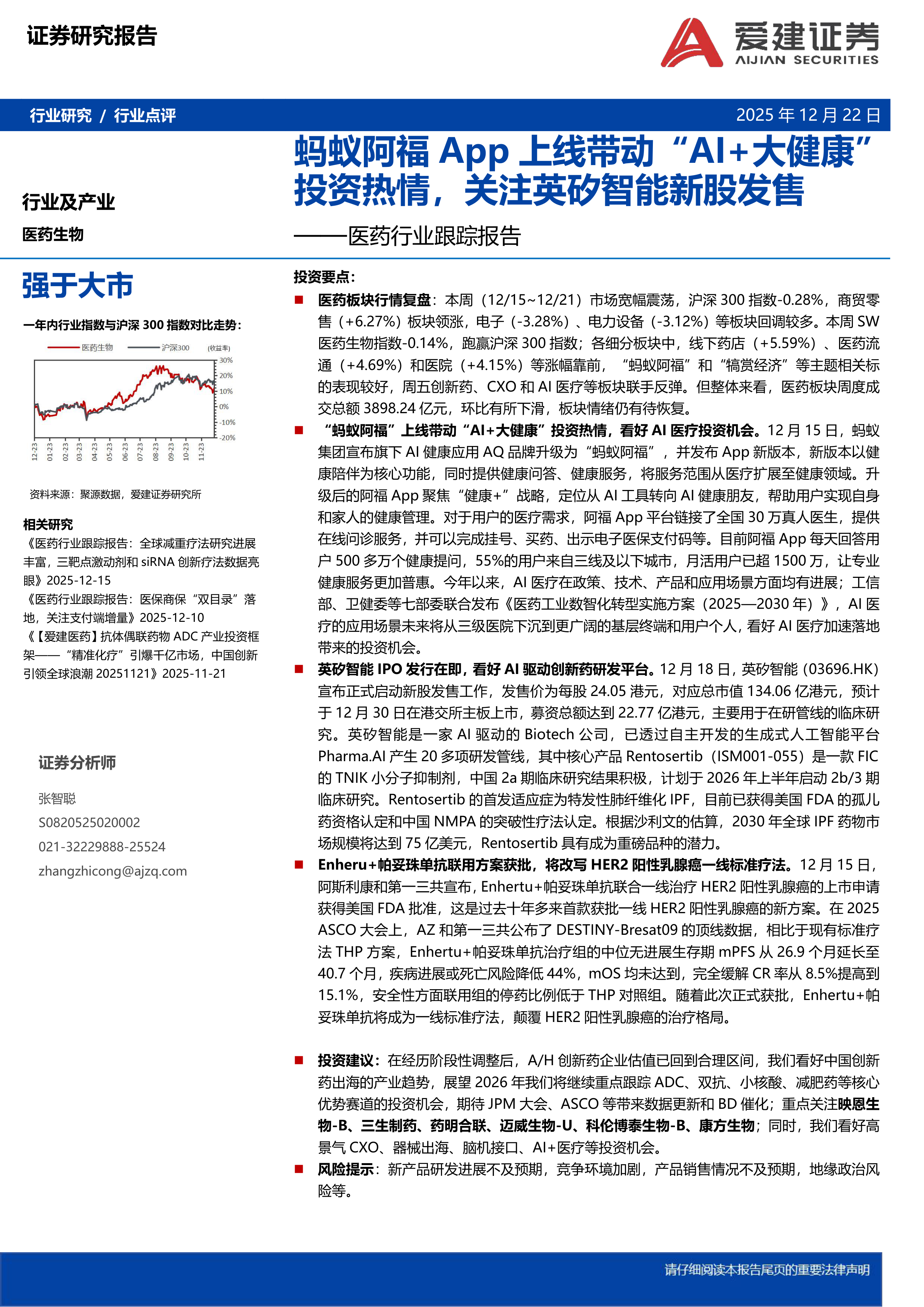 医药行业跟踪报告:蚂蚁阿福App上线带动“AI+大健康”投资热情,关注英矽智能新股发售