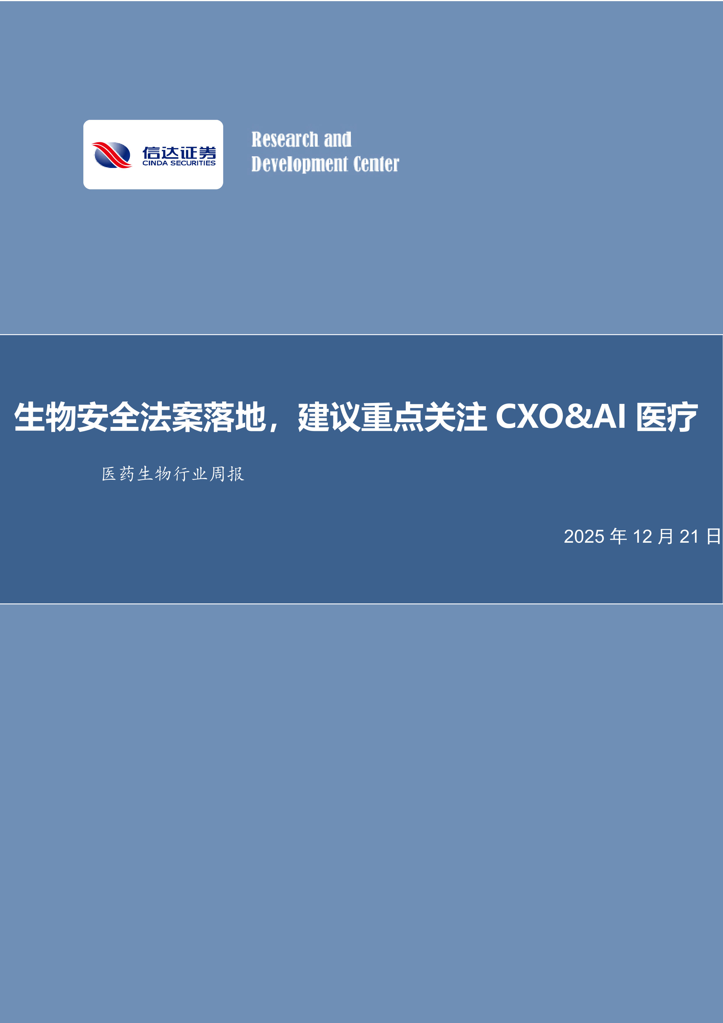 医药生物行业周报:生物安全法案落地,建议重点关注CXO&AI医疗