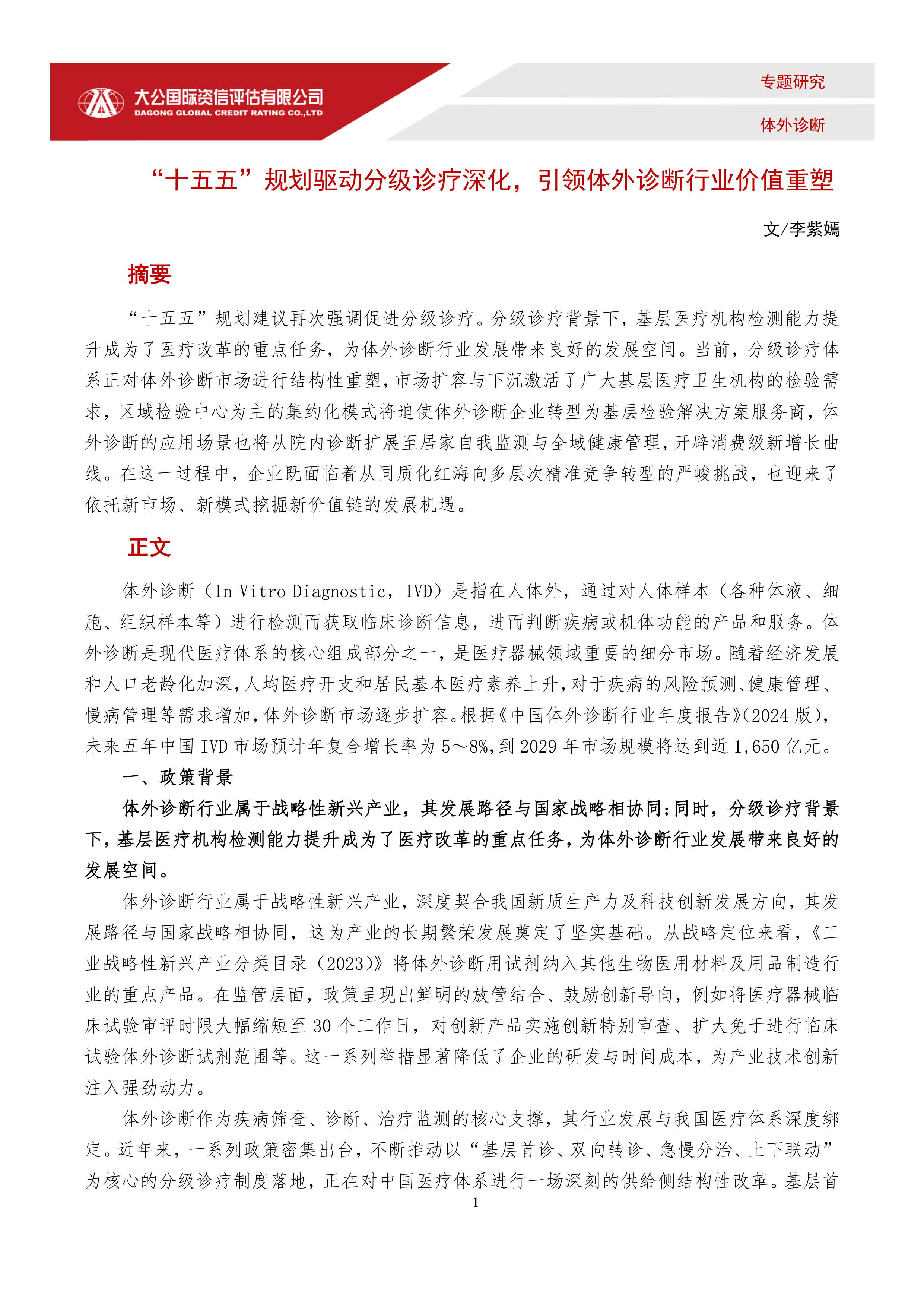 体外诊断专题研究:“十五五”规划驱动分级诊疗深化,引领体外诊断行业价值重塑