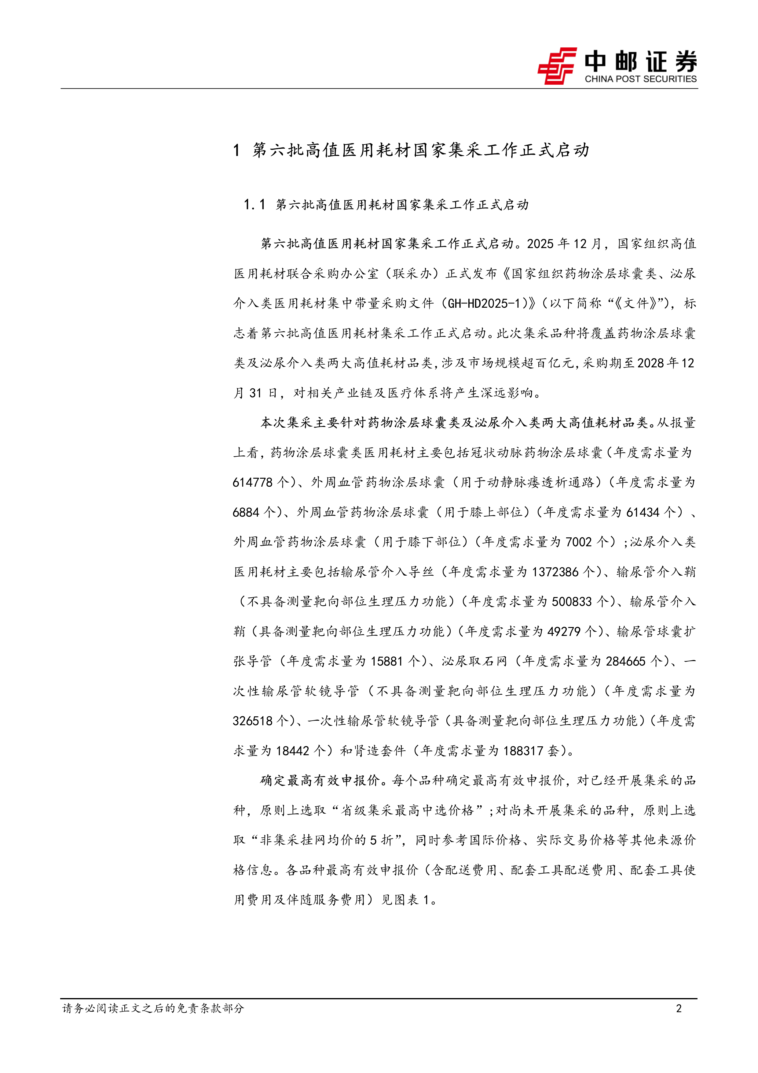 第六批高值医用耗材国家集采工作正式启动。2025年12月,国家组织高值医用耗材联合采购办公室(联采办)正式发布《国家组织药物涂层球囊类、泌尿介入类医用耗材集中带量采购文件(GH-HD2025-1)》(以下简称“《文件》”),标志着第六批高值医用耗材集采工作正式启动。此次集采品种将覆盖药物涂层球囊类及泌尿介入类两大高值耗材品类,涉及市场规模超百亿元,采购期至2028年12月31日,对相关产业链及医疗体系将产生深远影响。