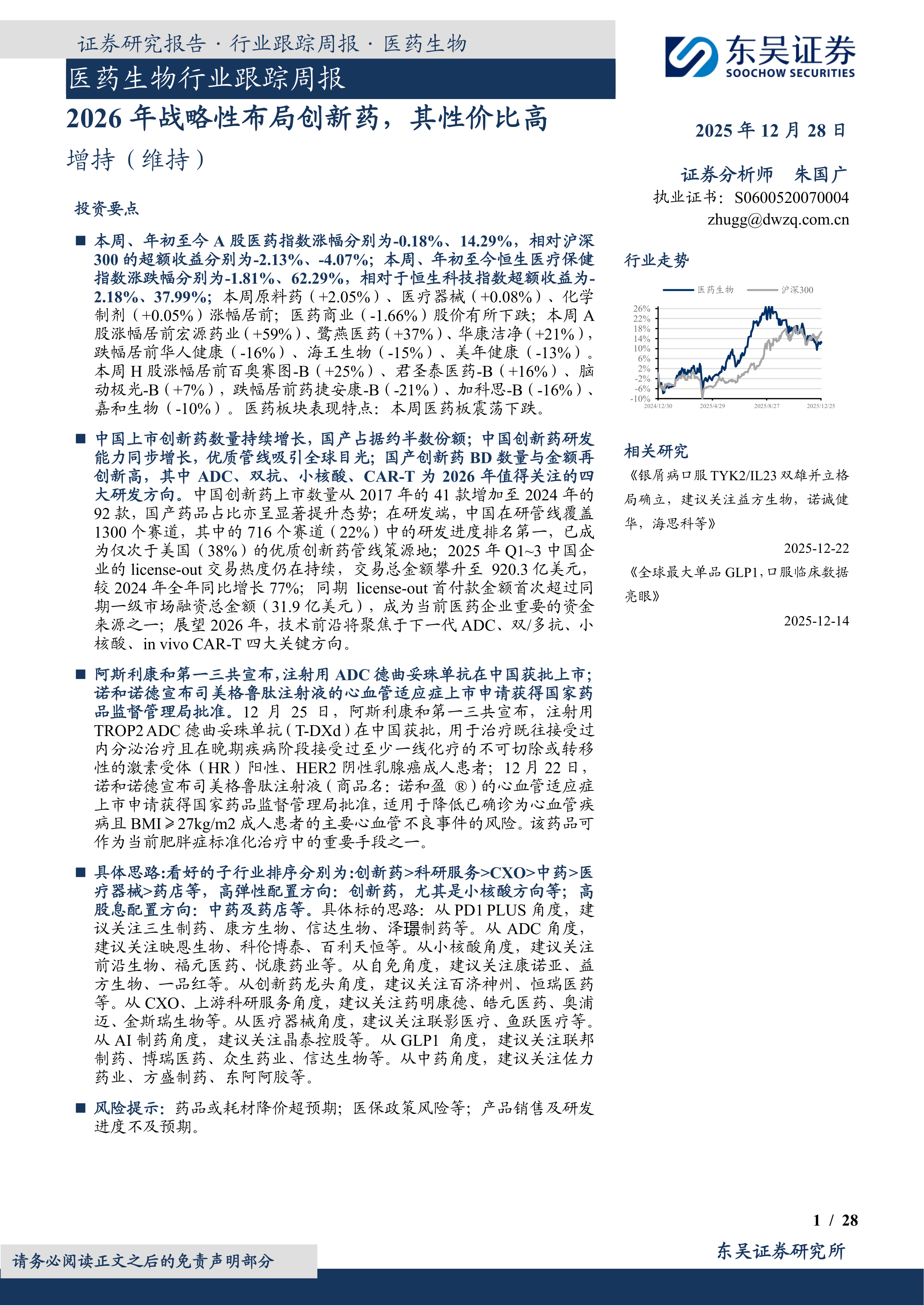 医药生物行业跟踪周报:2026年战略性布局创新药,其性价比高