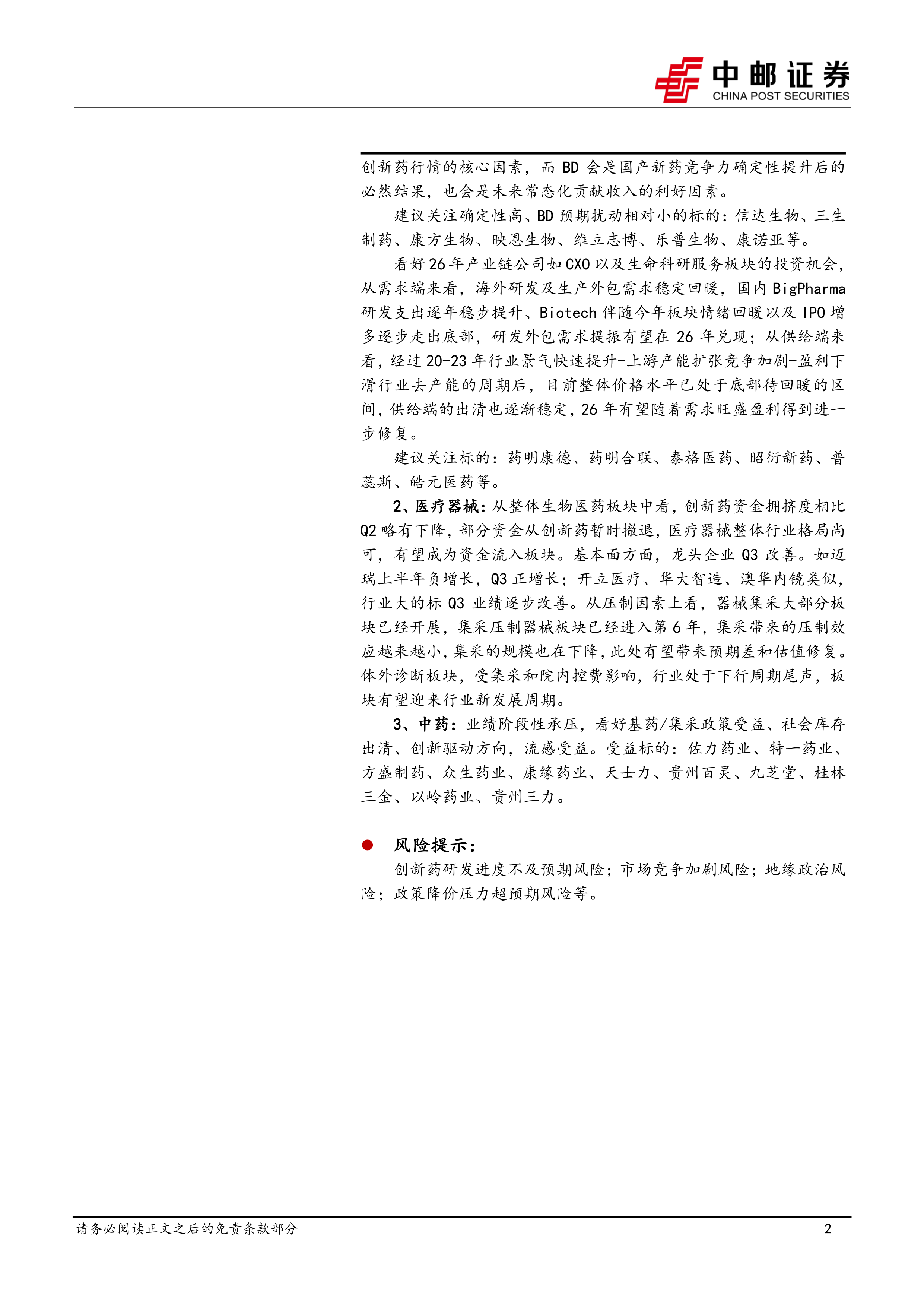 创新药研发进度不及预期风险;市场竞争加剧风险;地缘政治风险;政策降价压力超预期风险等。