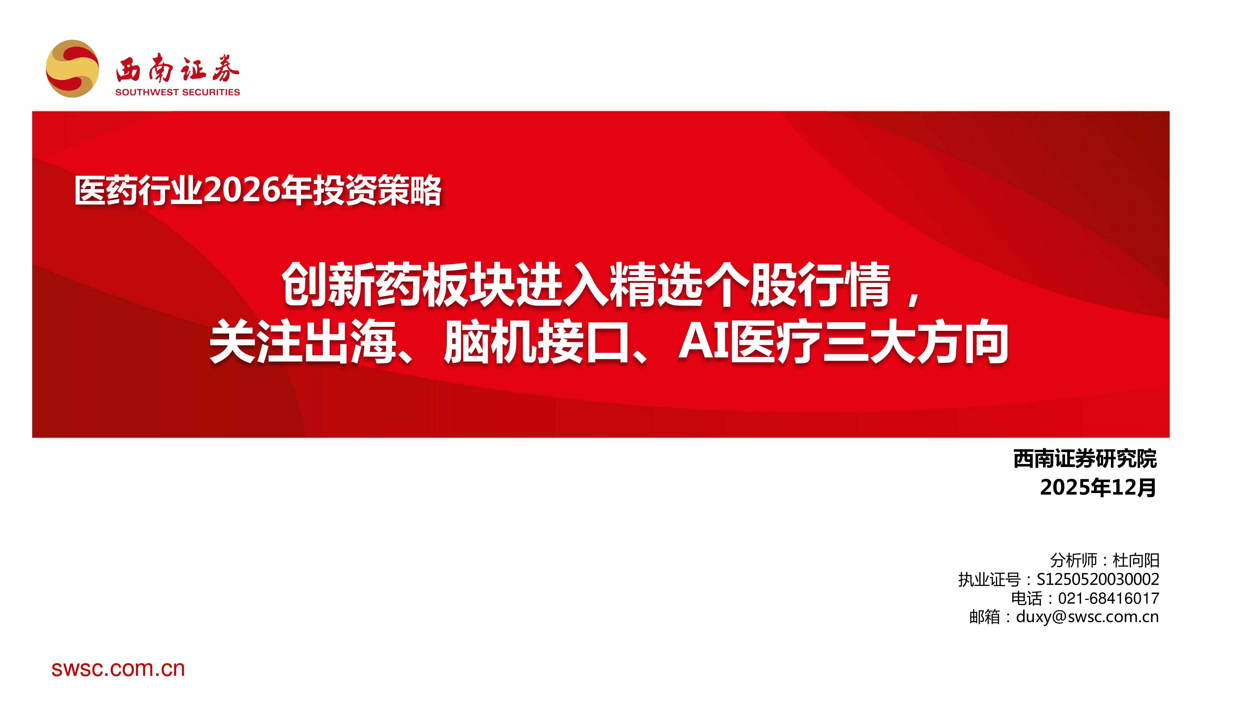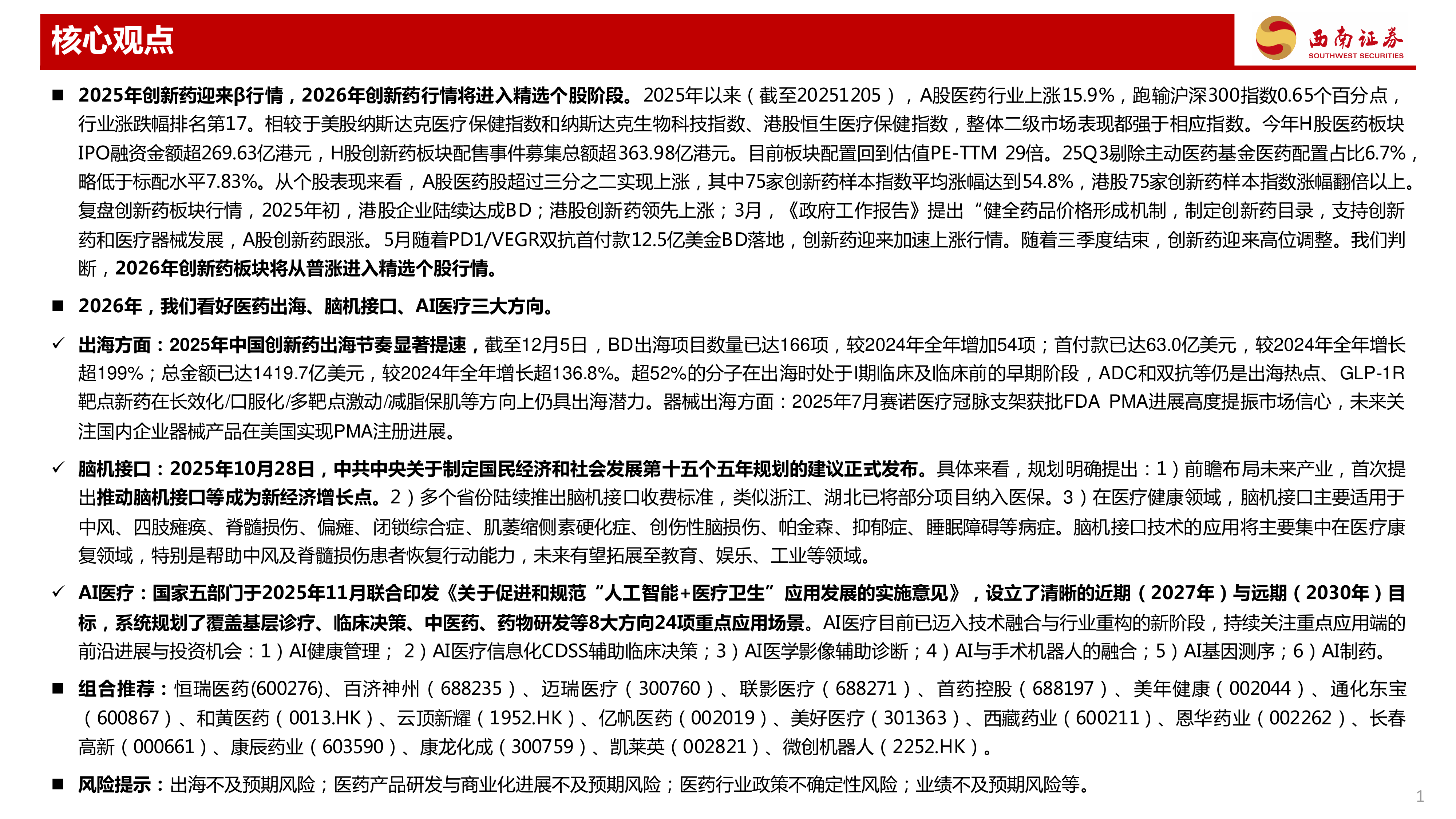 医药行业2026年投资策略:创新药板块进入精选个股行情,关注出海、脑机接口、AI医疗三大方向