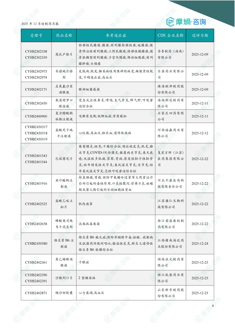 2025年12月仿制药月报