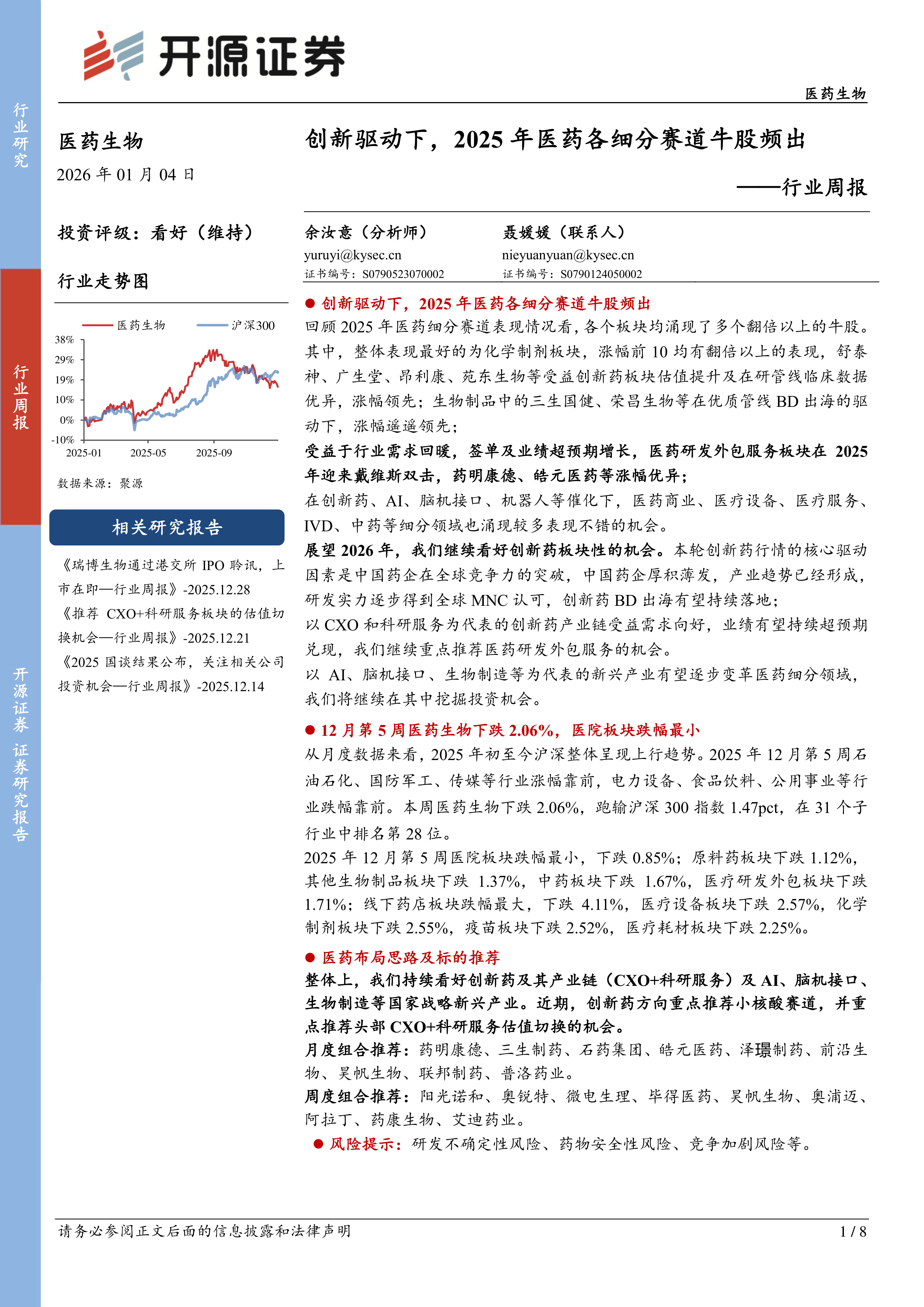 医药生物行业周报:创新驱动下,2025年医药各细分赛道牛股频出