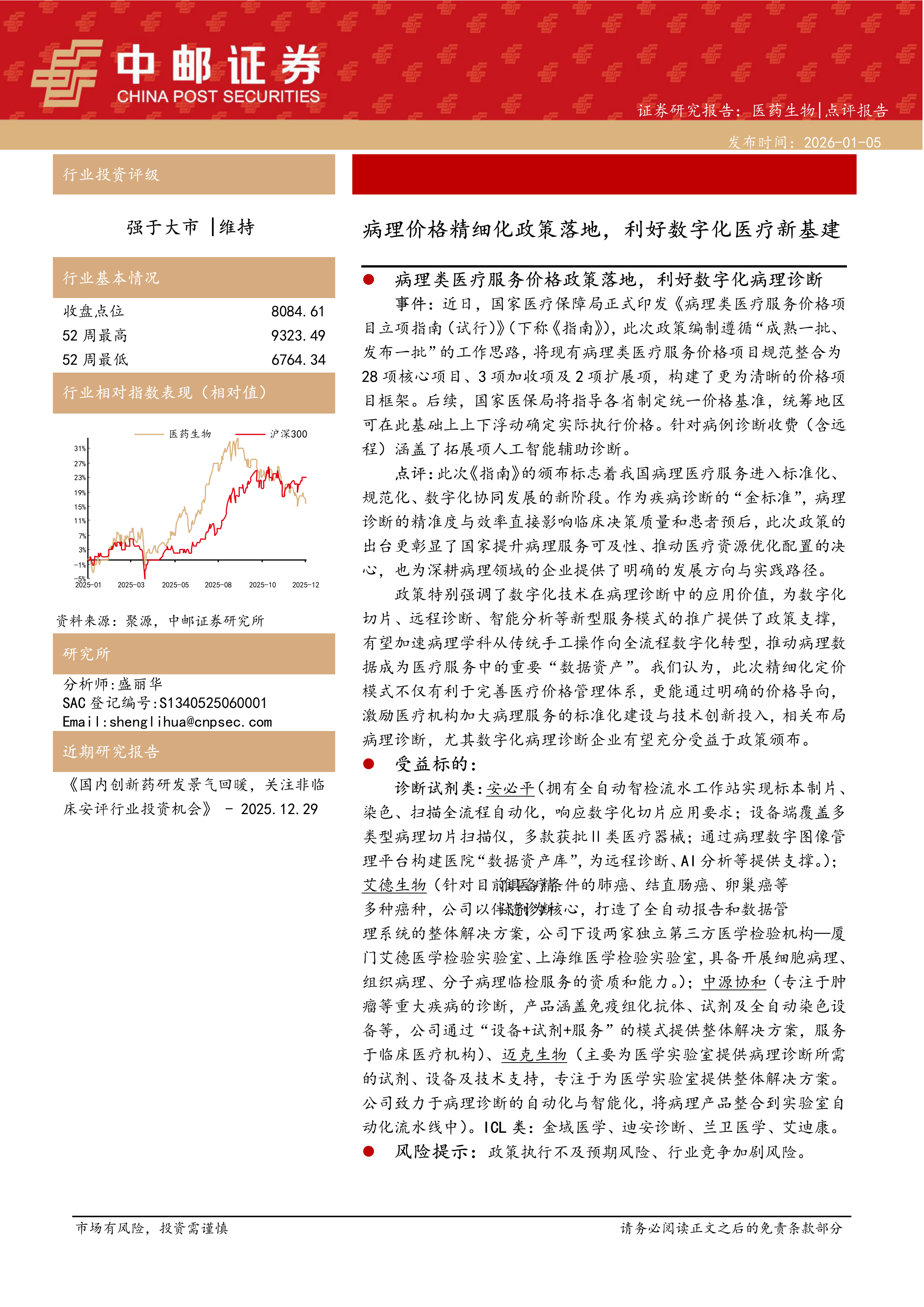 医药生物:病理价格精细化政策落地,利好数字化医疗新基建