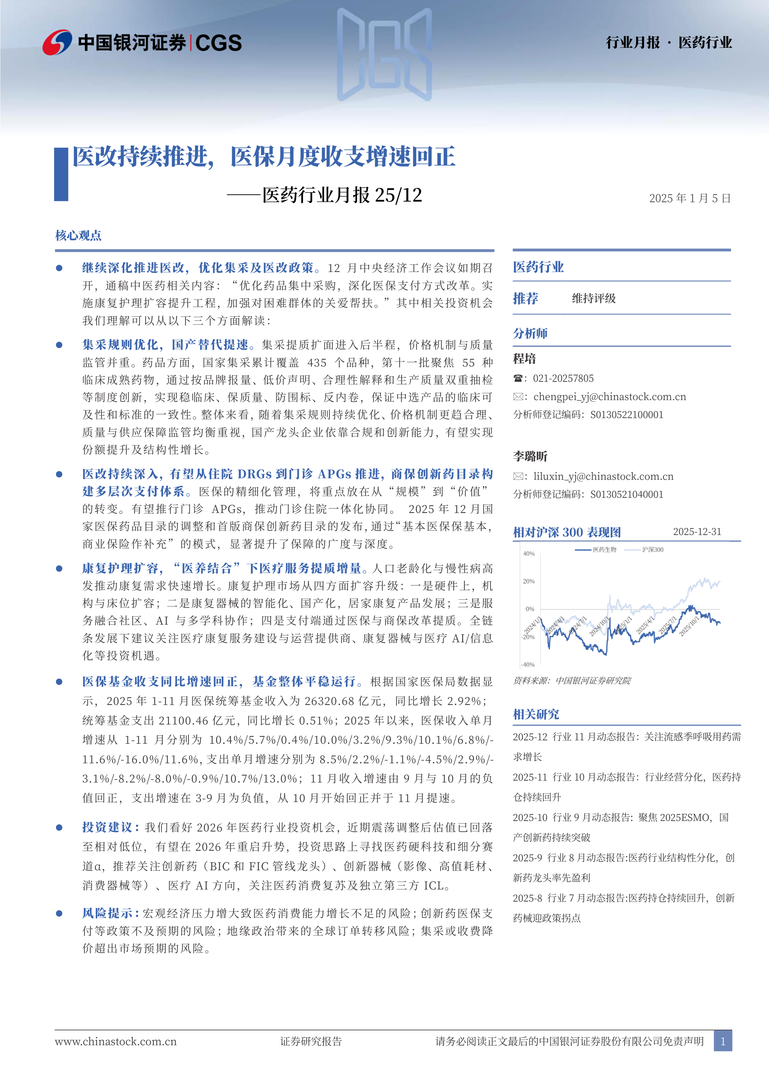 医药行业月报25/12:医改持续推进,医保月度收支增速回正